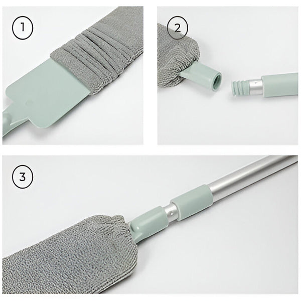 - REGULIUOJAMAS IR PAKEIČIAMAS: Rankena yra nuimama, o mikropluoštu padengta šluostė labai lanksti, todėl patogu valyti įvairiausiose vietose! Su skyle patogiam pakabinimui bei džiovinimui.